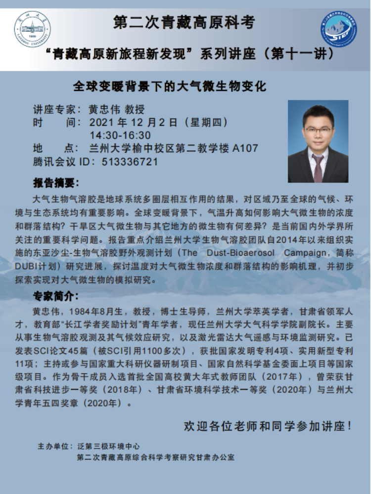 “青藏高原新旅程新发现”系列讲座(第十一讲)全球变暖背景下的大气微生物变化